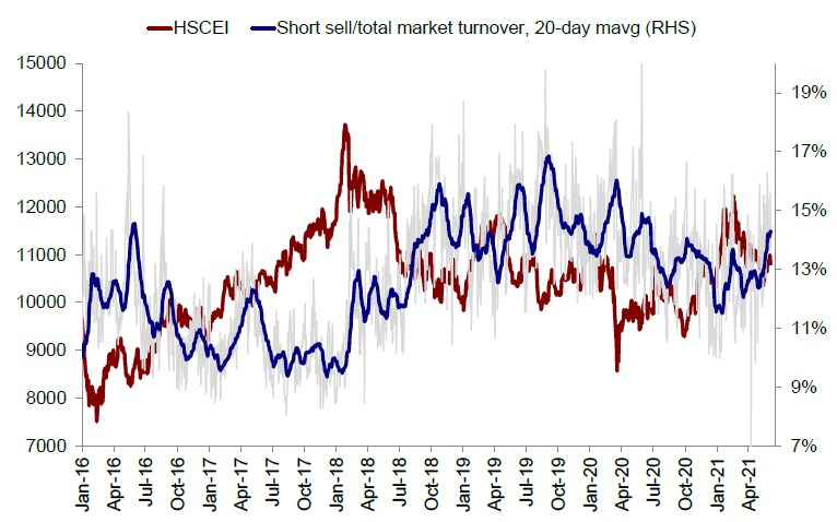 与此同时,上周中国央行14年来首次上调外汇存款准备金率,其目的在于抑制外汇市场投机性交易,推动汇率双边波动走势。对港股而言,从历史经验看,人民币汇率与海外中资股成明显正相关性,升值预期也吸引海外资金流入。