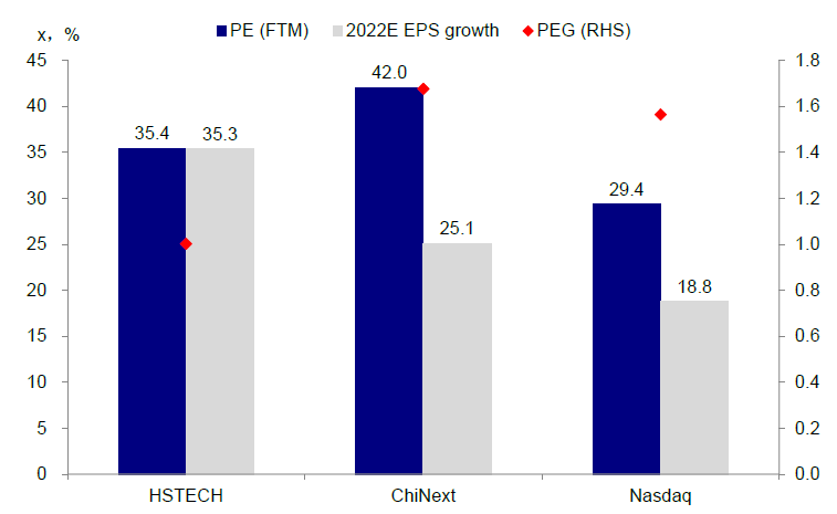 恒生科技指数仍相对创业板和纳斯达克有吸引力