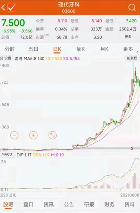 股价涨5倍需要多久?义齿加工龙头现代牙科只用了59个交易日的时间。