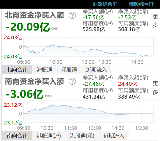 沪深股市低开高走,北向资金净流出20.09亿元,其中,沪股通净流出17.56亿元,深股通净流出2.53亿元。