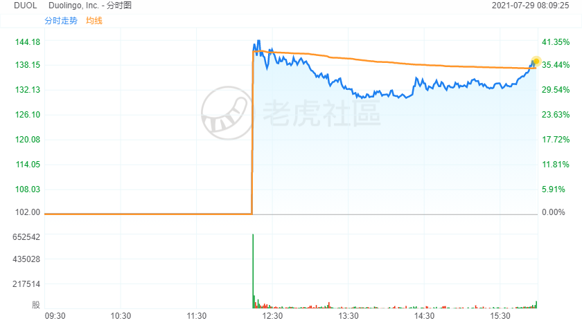 在线和移动语言学习平台多邻国(Duolingo,Inc.,股票代码DUOL)周三正式登陆纳斯达克,开盘涨超37%,IPO价格为102美元,盘中最高触及145美元。