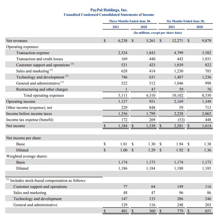 美东时间7月28日周三美股盘后,PayPal公布了截至2021年6月30日的第二季度财报。因净利润下滑,公司股价在盘后一度跌超6%。财报显示,PayPal(PYPL.US)Q2净营收为62.38亿美元,同比增长19%;净利润为11.84亿美元,同比下降23%;摊薄后每股收益为1.0美元,去年同期为1.29美元。