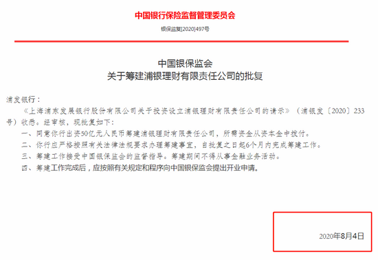 据银保监会批复,上海银行应严格按照有关法律法规要求办理筹建事宜,自批复之日起6个月内完成上银理财的筹建工作。