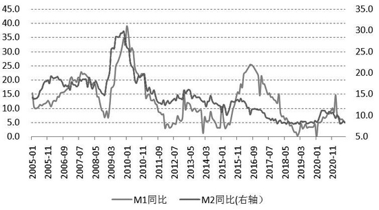 用M1-PPI去反映股票市场的流动性,当前A股仍处于存量博弈中。对于A股市场而言,如果一边是中国社会总信用扩张,另一边是工业原材料价格处于低位,实体对资金的占用并非紧张,那么就容易出现大幅上涨,类似于2014年至2015年上半年。然而,2021年上半年,M1增速持续回落,而PPI增速持续攀升,信用在收缩,工业品价格高涨,使得A股一直在存量博弈。