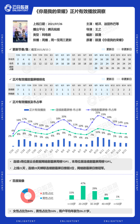 《你是我的荣耀》自7月26日在腾讯视频独播上线开始,就一直保持了较高的热度。