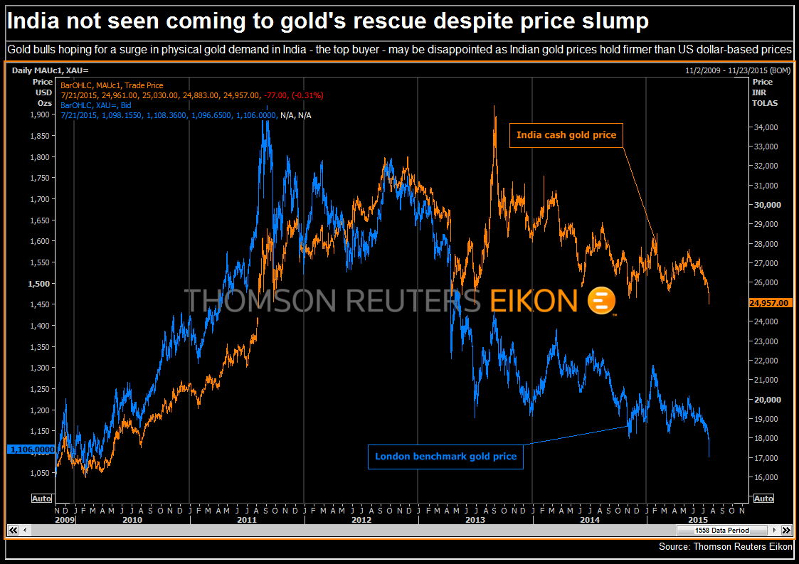 不管是因为降雨情况不理想也好,还是婚礼太少也罢,总之,在本周金价重挫之后,向来青睐黄金投资的印度人并没有纷纷抢购黄金。