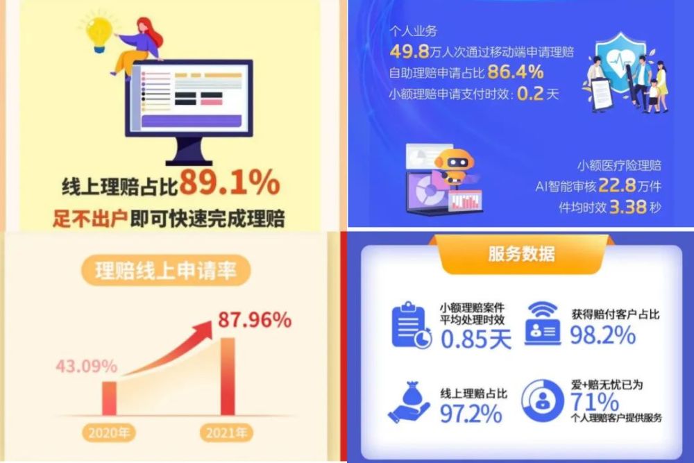 根据2021年各保险公司公布的理赔半年报,绝大多数案件都是在线申请理赔: