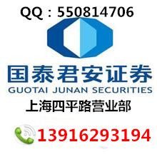 国泰君安四平路营业部13916293194朱经理股票开户 佣金优惠 手机开户 网上开户佣金最低提前预约,现场开户不用排队一对一服务,新开户的股民讲解股票操作方法。