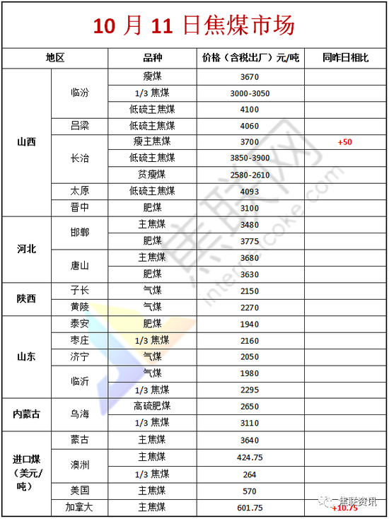 原标题:【焦联资讯】10月11日焦炭(3528, -10.00, -0.28%)市场供需均有所下滑 焦煤(3217, 10.00, 0.31%)价格承压运行 市场观望情绪渐浓