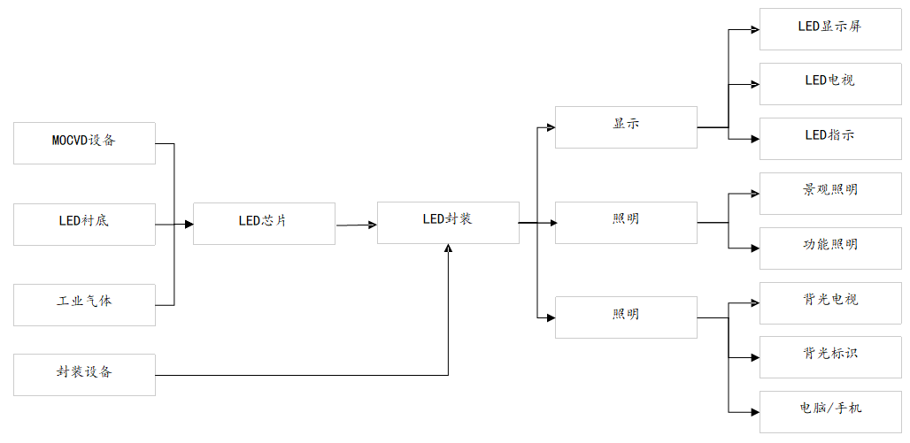 目前,公司产品涵盖高端LED显示屏、LED照明、LED封装器件三大领域,所处产业链中下游。