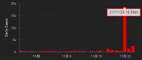 作为非洲疫情最严重的国家,目前南非累计确诊人数超295万,累计死亡人数近9万。尽管11月份上旬南非每日新增病例数始终维持较低水平,但最近一周该数值却激增。当月22日从312例猛增至次日的近2万例;25日新增2465例确诊病例,也将近前一日的两倍。尽管目前还没有证据,但当地科学家怀疑南非这一波新的感染与omicron有关。