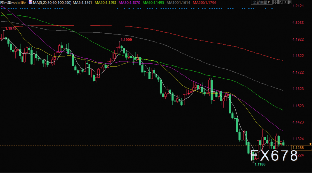 (欧元兑美元日线图)北京时间12月13日15:28,欧元兑美元报1.1288/90。