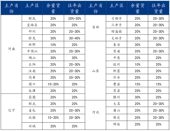 据Mysteel电话调研统计,山东、河南、河北、东北产区基层余量已有明显下降,各主产区基层余量大约在20%左右,贸易商普遍反映近期上货量情况与前期有所减少,部分产区受新冠疫情影响下物流受阻,加之部分地区处于农忙阶段,导致短期内供应端处于偏紧局面。
