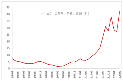 欧洲电炉钢占比约50%-60%,自循环废钢及进口废钢是欧洲粗钢生产的主要原料,利用电弧加热并配合精炼炉生产出钢材成品。据BP能源总署整理的欧洲总体区域电力结构中天然气和煤炭占比分别为24.4%、16.4%,其中天然气约90%为进口,俄罗斯占总进口量的45%,煤炭进口中俄罗斯动力煤(826, -4.00, -0.48%)占到总进口量的70%,本次欧美对制裁直接面临能源危机,电力成本推升总体价格路径在战争结束之前难以改变。