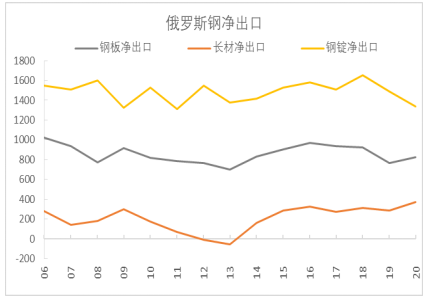 出口方面,俄罗斯属于钢铁行业净出口国,其中钢锭净出口约1350万吨,板材净出口约820万吨,长材净出口约340万吨,是全球钢铁主要出口国之一。钢材主要出口国为土耳其(15%),哈萨克斯坦(13%)及白俄罗斯(12%),欧盟及美国(20-25%),战争使得全球大国对俄反倾销,叠加黑海港口战争困扰,预计总体俄出口量将减少25%-30%,约405万吨钢锭,250万吨板材,100万吨长材。