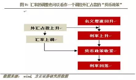 利率和汇率,代表了货币政策一枚硬币的两面。利率上升时,往往处于经济繁荣或滞涨期,这时上调人民币汇率意图于控制外汇占款的流入规模,而反之亦然。从政策角度而言,汇率调整与利率对经济的影响机制相似,主动性调低汇率存在对需求和价格的正反馈。