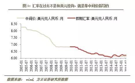 汇率在过去相当长的一段时间内,不是和美元挂钩,就是靠中间价指导的。过去一段时间内,汇率的波动大致分为几个阶段:2005年7月之前,美元兑人民币一直锁定在8.28左右;2005年7月到2008年9月,人民币与美元开始脱钩,引入询价交易方式,期间美元兑人民币汇率一路升值到6.83左右,但仍然处于高度计划阶段,中间价对当日成交价格波动区间仅可在0.3%-0.5%;2008年9月到2010年6月,人民币重新和美元在6.83左右处挂钩;2010年6月至今,人民币恢复市场化波动,虽仍然靠中间价指导,但这个固定波动区间已经从0.5%上调至2%。