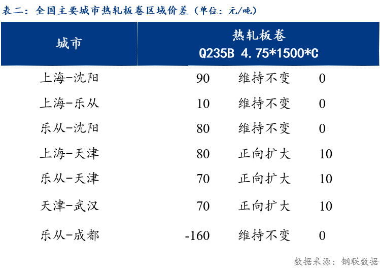 从区域价差来看,华东与东北价差90元/吨,较上一交易日持平;华东与华南价差10元/吨,较上一交易日持平;华南与华北价差70元/吨,较上一交易日上涨10元/吨。