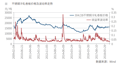3、2016年至今,由于行业整体利润下滑,产量维持小幅增长,同时需求保 持稳步增长。2016年底304冷轧价格反弹回18000元/吨高点后,至2018年底基本 维持窄幅震荡运行。