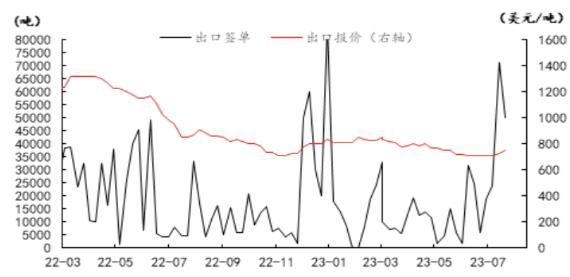 7月份PVC出口订单上升,主要集中在印度市场。一方面,印度受雨季影响较小;另一方面,8—9月美国部分装置计划检修,使得国外PVC供应有下降预期,印度市场在淡季出现较强补库需求,不过7月下旬PVC生产企业签单环比增速下降,后期关注印度市场补库持续性。