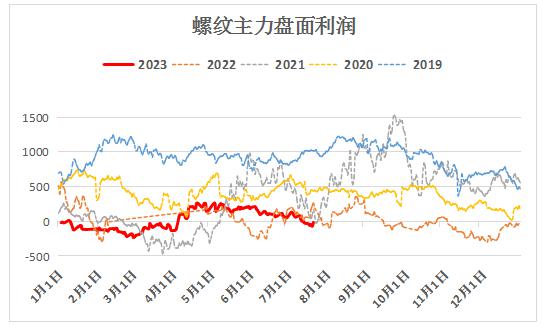 黑色系在本轮连续两周的上涨中(7月10日开盘至7月25日收盘),铁矿上涨7.67%,焦炭上涨12.72%,螺纹上涨5.56%,成本端的涨幅再度高于成材端,致使成材的即期生产利润以及盘面利润出现明显收缩,目前通过成本粗略估计下来的螺纹盘面利润已处于近五年几乎最低的水平。同时,盘面上焦煤、铁矿主力距离交割日越来越近,期货移仓换月的过程逐步开启,伴随中央政治局会议超预期表态和愈演愈烈的粗钢压减呼声,市场的格局正逐步发生变化,对于目前盘面高基差的铁矿和小幅升水的螺纹,接下来我们对其可能的走势做相应的分析及推演。