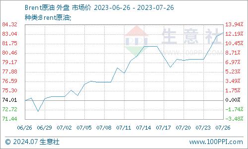 目前成本仍有一定支撑。沙特和俄罗斯进一步推进减产,供应收紧预期不改,以及美国汽油需求回升,国际原油价格持续攀升。截止7月25日,美国WTI原油期货主力合约结算价报79.63美元/桶,布伦特原油期货主力合约结算价报83.25美元/桶。PX跟随原油偏强振荡,PX处于累库周期,国内PX开工负荷偏低,但需求端PTA新产能落地带动新增点释放,PX供需矛盾尚未凸显。