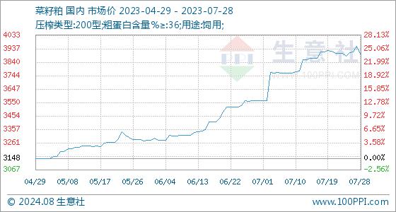 7月28日生意社菜籽粕基准价为3953.33元/吨