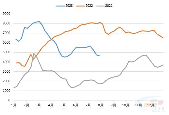 经过5-6月连续两个月的去库,7月下旬起,中下游开始屯货,厂家出货情况有明显好转,库存进入短期的去化。整体来看,7月末全国库存环比下降了16.64%。分区域看,降库速度最快的是华中,月末环比下降34.88%;华北、华南和东北地区库存下降得也比较多,月末环比分别下降28.47%、22.75%和24.89%,其次华东、西南和西北库存亦有一定程度的下降,环比降幅在11%以内。