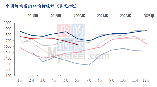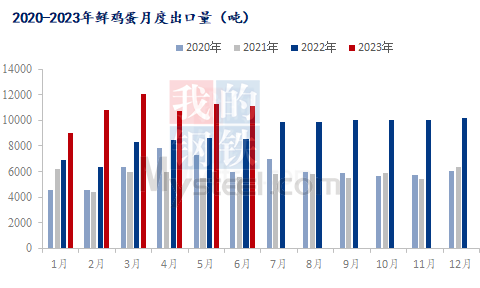 2023年上半年鲜鸡蛋出口总量同比增加,出口均价同比下降
