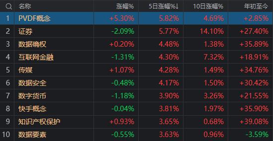 此外,5日涨幅领先的板块,目前主要以上周开始反弹的AI相关概念为主,今天有的微涨有的微调。分时图上能看出早盘有拉升动作,此后随大盘走势回落。