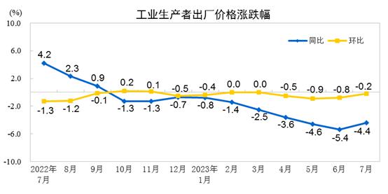 国家统计局:7月份PPI同比下降4.4%环比下降0.2%