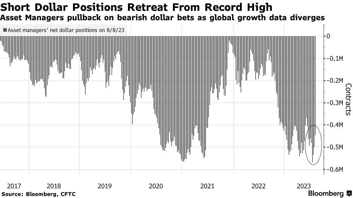 美国商品期货交易委员会(CFTC)上周公布的一项数据显示,美元空头仓位跌至八周来的最低水平。