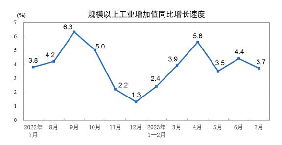 国家统计局:7月份规模以上工业增加值同比增长3.7%