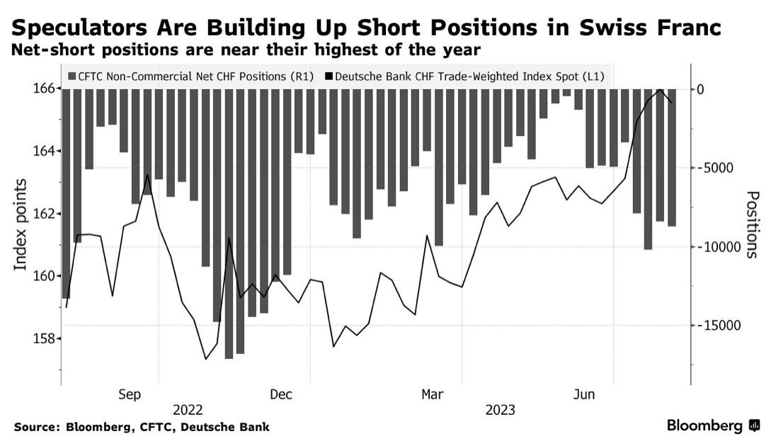 美国商品期货交易委员会(CFTC)截至8月8日当周的数据显示,自5月底以来,投机者对瑞郎的净空头头寸增加了逾10倍。与此同时,道富银行的数据显示,机构投资者持有的瑞郎空头头寸达到了过去五年来的最高水平之一。