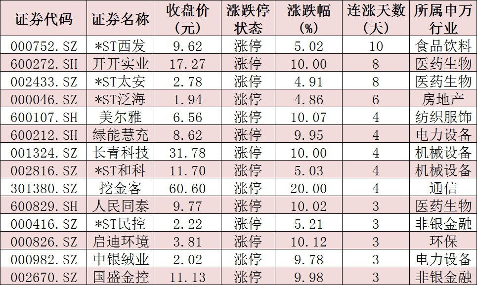 表:连续上涨3日且今日收盘涨停个股情况:
