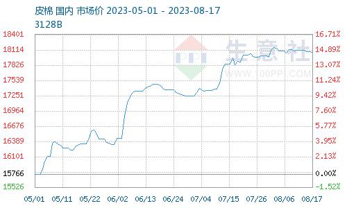 8月17日中国棉花指数3128B级均价18076元/吨,较上一日下跌10元/吨。