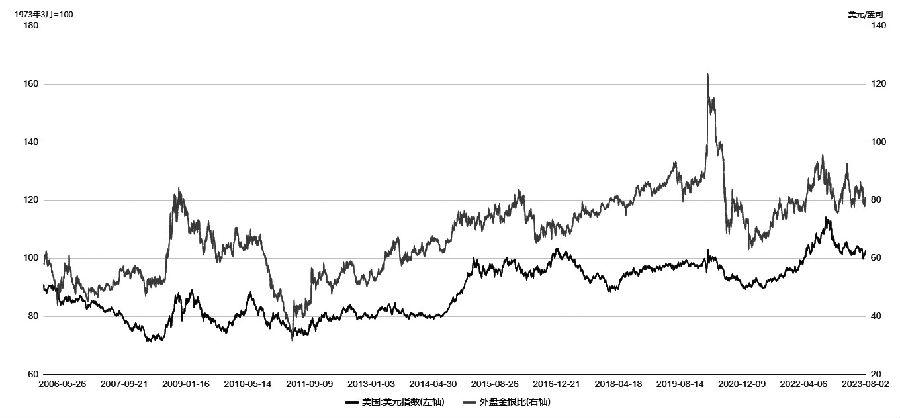 同样的,当美元指数表现较弱时,市场避险需求相对减弱,这时通常美国经济表现不如其他经济体,导致市场对美元、黄金的避险需求减弱;在全球经济表现较好的时期,白银的工业需求增大,这就引发金银比出现回落。同时,在全球经济同时很差或者同时很好的时期,通常金银比也会维持稳定。