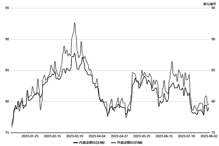 金银比是黄金与白银之间价格的比值,市场中利用金银比值套利主要基于两者关联性强,但是由于白银一方面具有金融属性,跟随黄金,另一方面自身具有商品属性,跟随铜等大宗商品的走势,就导致二者在一定时期内比值出现分化和差异。