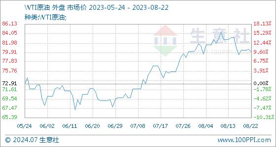 8月22日生意社WTI原油基准价为80.66美元/桶