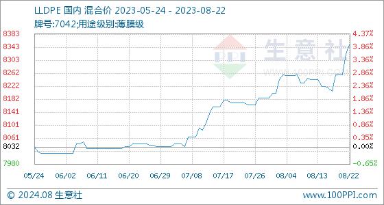 8月22日生意社LLDPE基准价为8321.43元/吨