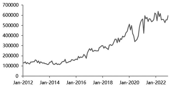 美国主要通过管道运输向墨西哥和加拿大出口天然气。天然气是墨西哥的主要发电燃料,加之该国靠近美国天然储量丰富的盆地,可以很好地将美国的天然气供应给其他需要进口天然气的欧洲和亚洲买家,故墨西哥向美国进口的液化天然气量较大。同时从季节性变化来看,美国向墨西哥的天然气管道出口通常在夏季达到高峰,主要原因是随着气温升高,空调用电增加,进口的天然气通常以发电方式被消化。2022年,美国通过管道向墨西哥输送的天然气总量为9596.30亿立方英尺,较2021年增加了2.4%。加拿大是美国最大的能源贸易伙伴,2022年,美国通过管道向加拿大出口了20786.26亿立方英尺天然气,较2021年下降了0.3%。美国还有少量的液化天然气通过卡车向这两个国家出口,不同的是墨西哥通过卡车进口的液化天然气的数量在增加,而加拿大通过此方法进口的数量在减少。
