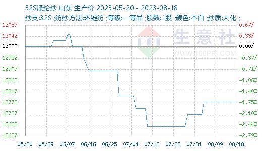 据生意社商品行情分析系统显示,本周纱线市场总体行情依旧稳中观望,气氛仍然平淡,出货量一般,纱厂、贸易商心态多数平静。截至8月18日,山东地区纯涤纱市场均价持稳在12775元/吨,同比下跌10.66%,涤棉纱市场均价持稳在17720元/吨,同比下跌3.49%。
