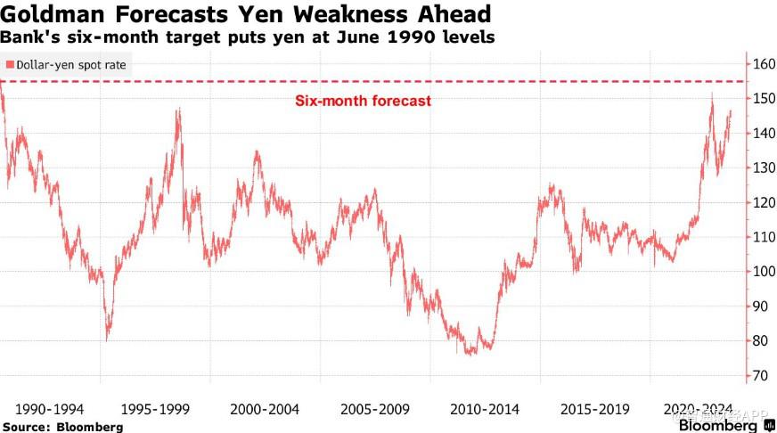 高盛表示,如果日本央行坚持鸽派立场,日元将跌至30多年前的水平。在接下来的6个月里,日元兑美元的汇率预计将跌至155日元兑1美元,这是自1990年6月以来的最低水平。高盛此前预计日元汇率为135日元兑1美元。