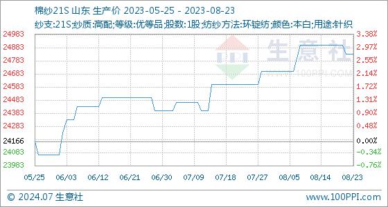 8月23日生意社棉纱21S基准价为24833.33元/吨