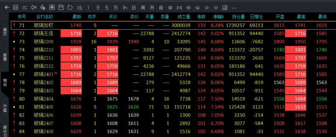 对此,中信建投期货能化高级分析师胡鹏也表示,因近期政策利好频发、玻璃产销率边际好转,玻璃期货价格上涨是在预期内的,但当日午盘玻璃主力合约上涨9%,且多个合约封于涨停板,强势程度明显超过市场预期。