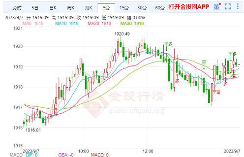 周四(9月7日)本交易日伦敦金日内震荡上涨,今日开盘报1916.36美元/盎司,最高触及1920.59美元/盎司,最低触及1916.01美元/盎司,截止发稿金价报1919.07美元/盎司,涨幅0.15%。