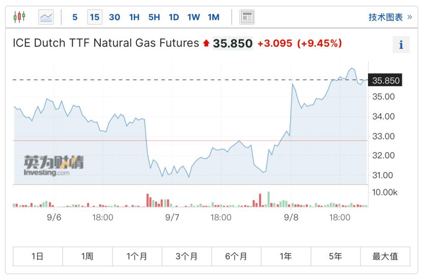 另外,欧洲能源也突传“重大利空”消息。当地时间9月8日,全球能源巨头雪佛龙与澳大利亚液化天然气工会的谈判破裂,两家液化天然气厂正式开始罢工。该消息传出后,欧洲天然气期货价格日内一度飙升超10%。