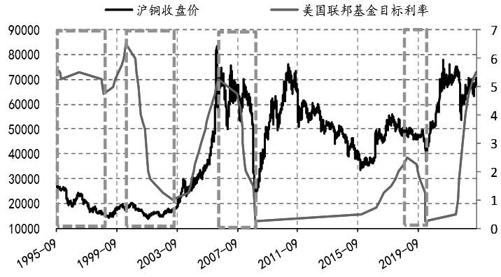 2022年以来,为抑制高通胀,美联储开启了漫长的加息历程。目前,美国联邦基金目标利率已经达到历史高点。从美联储的表现来看,当前已经缓步过渡至暂停加息的临界点,市场再度进入谨慎的观望期。复盘过去这一年多的外围宏观表现,以及其对以铜为代表的大宗商品的影响,我们似乎可以发现一些不一样的线索。