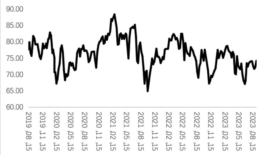 目前PVC下游需求表现并不理想,存在旺季不旺的情况。截至9月8日当周,国内PVC下游平均开工负荷为46.54%,环比上升0.1个百分点,同比下降5.98个百分点。其中,管材企业开工一般,大致在五成;软制品开工在八成左右。目前,PVC处于“金九银十”旺季,但是市场整体需求一般,新增订单相对有限。受此影响,PVC下游企业开工负荷提升缓慢,整体低于去年同期水平。不仅如此,下游企业面对近期上涨的PVC原料价格,采购较为谨慎,PVC价格上涨成交难以放量。除此之外,目前软制品库存充足,但是终端订单有限,高价对于下游需求存在一定的抑制。