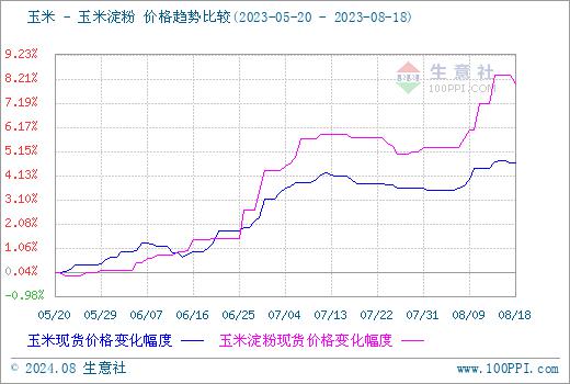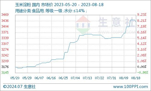 受原料成本上涨加之玉米淀粉库存持续低位支撑,进入8月国内玉米淀粉市场价格持续上行。8月中旬开始,台风天气影响减弱,港口及深加工企业玉米到货量持续回升,国内玉米市场价格冲高回落,原料成本震荡走低,本周国内玉米淀粉市场价格冲高小幅回落。